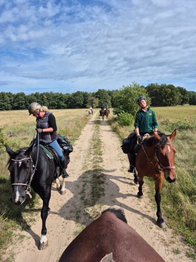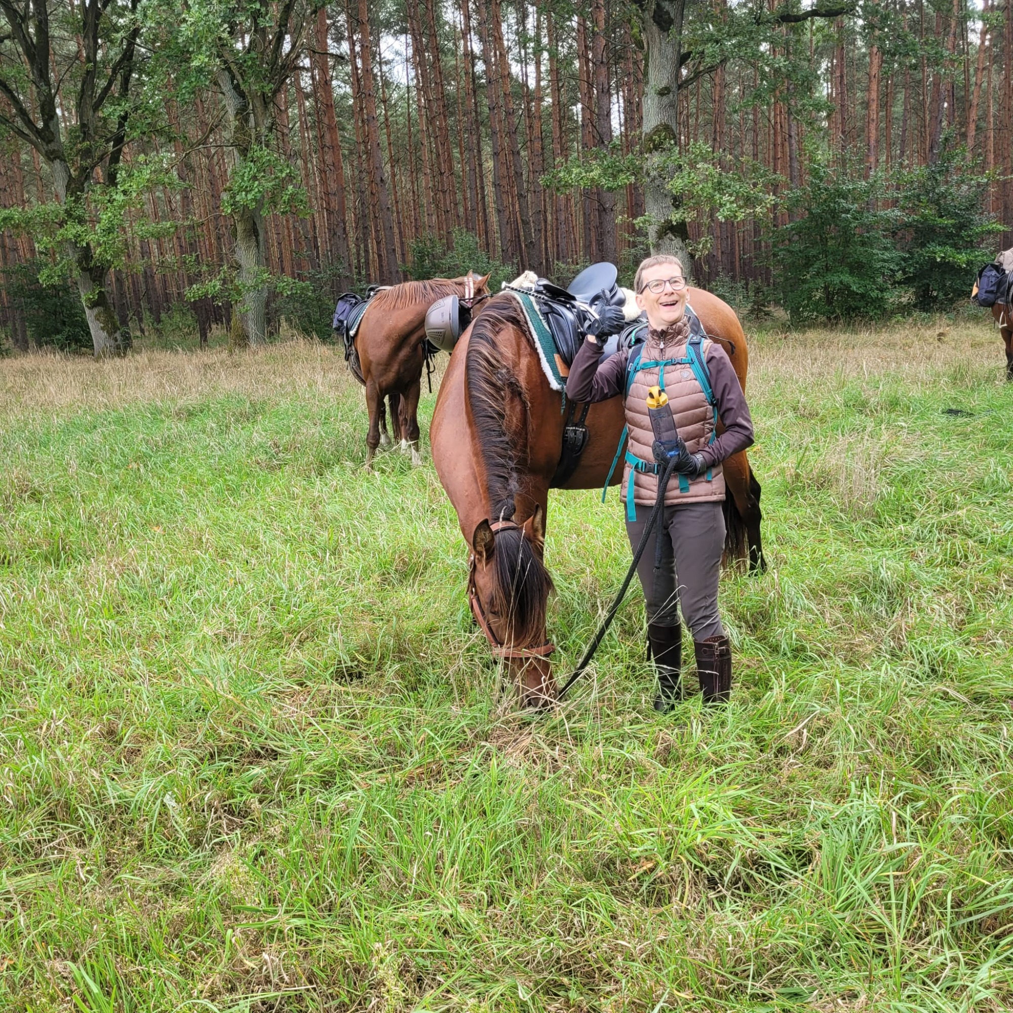 Obwohl es „Wanderreiten“ heißt, streben wir an, alle Strecken im Sattel zurückzulegen. Sollte es jedoch für einzelne Teilnehmer zwischendurch angenehmer sein, ein Stück zu Fuß zu gehen, nehmen wir selbstverständlich Rücksicht darauf. Dein Wohlbefinden und das deines Pferdes stehen immer im Mittelpunkt.