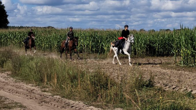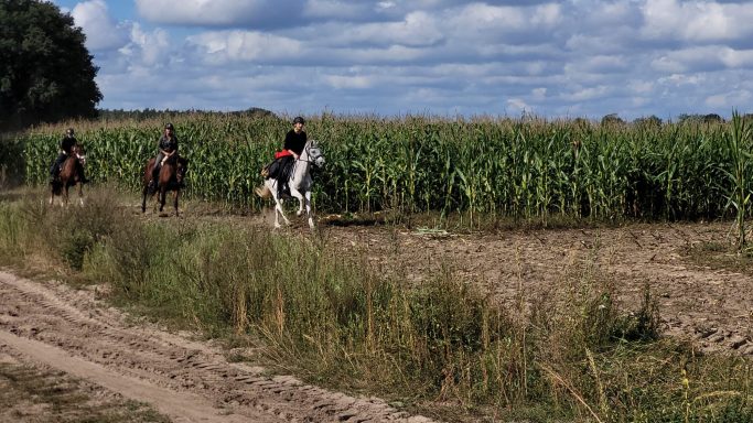 Da unsere Wanderritte längere Strecken umfassen und wir in gemäßigtem Tempo durch die Natur reisen, ist es wichtig, dass du sicher in allen drei Grundgangarten (Schritt, Trab, Galopp) frei reiten kannst. Wanderritte sind kein Training zum Reiten, daher erwarten wir, dass du diese Fähigkeiten sicher beherrschst, um die Reise angenehm und sicher für dich, dein Pferd und die Gruppe zu gestalten.