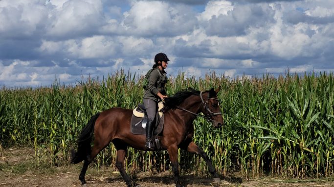 Unsere Ritte führen durch die wunderschöne, naturbelassene Umgebung, vorbei an sanften Hügeln, weitläufigen Feldern, malerischen Wäldern und klaren Bächen. Diese unberührte Natur ist die perfekte Kulisse, um den Alltag hinter sich zu lassen und sich auf das Wesentliche zu besinnen: Das Zusammensein mit deinem Pferd und das Genießen der Freiheit.